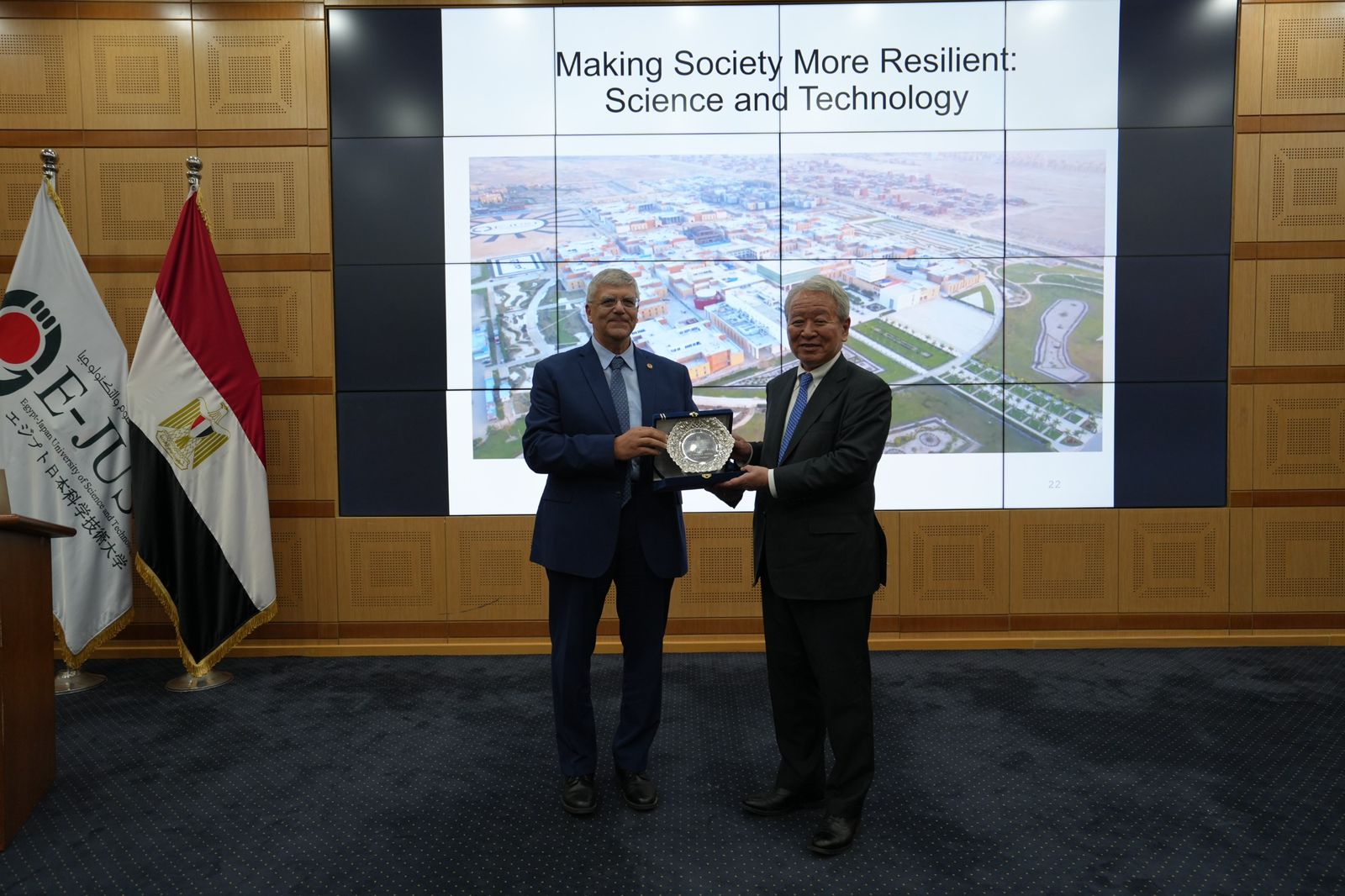 قدمت الجامعة المصرية اليابانية للعلوم والتكنولوجيا درع التقدير للبروفيسور أكيهيكو تاناكا، رئيس هيئة التعاون الدولي اليابانية (JICA)، تقديرًا لدوره البارز في دعم مسيرة التعاون بين مصر واليابان في مجالات التعليم والبحث العلمي والتنمية المستدامة، جاء ذلك خلال زيارة رسمية للبروفيسور تاناكا والوفد المرافق له إلى مقر الجامعة في برج العرب.
