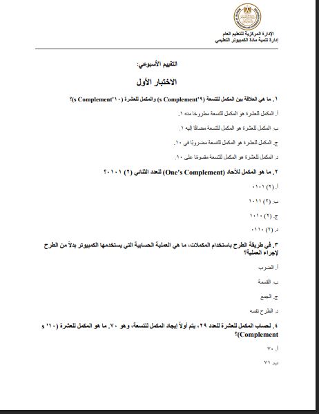مراجعات نهائية.. أسئلة تقييم الأسبوع الخامس البرمجة والذكاء الاصطناعي لغات الصف الأول الثانوي