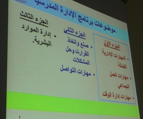 ومن جانبها أوضحت آمال سيد قمر، مدير إدارة التدريب المحلى بمديرية التربية والتعليم بأسيوط، أن الدورة التدريبية تتناول موضوع "المدير الشامل التنفيذى" بدأت منذ السبت ومستمرة على مدار 5 أيام وتشمل 5 محاضرات، بالإضافة إلى 5 ورش عمل, جميعها تتناول موضوعات حول القيادة المدرسية الناجحة.