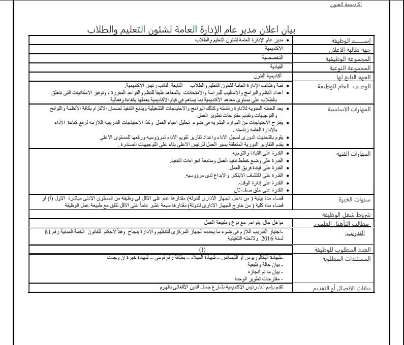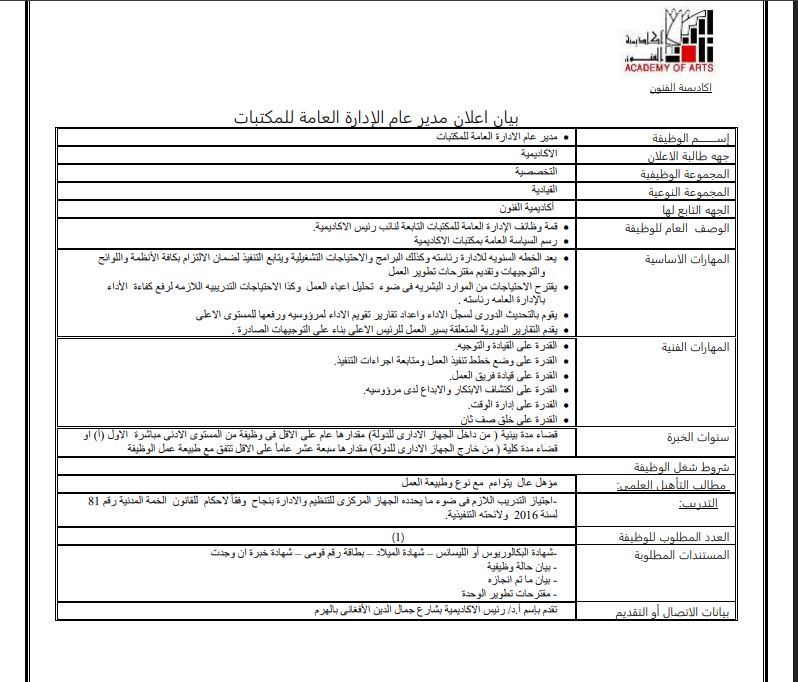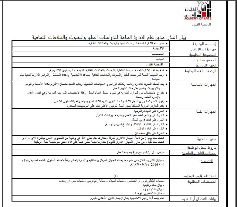 - وظائف شاغرة أكاديمية الفنون