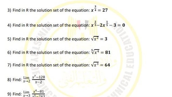 مراجعات نهائية.. أسئلة تقييم الأسبوع الثامن الرياضيات البحتة الصف الثاني الثانوي