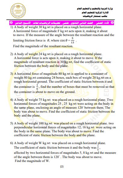 - مراجعات نهائية الصف الثاني الثانوي الرياضيات التطبيقية لغات