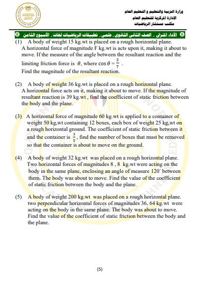 أسئلة تقييم الأسبوع الثامن الرياضيات التطبيقية لغات ثانية ثانوي