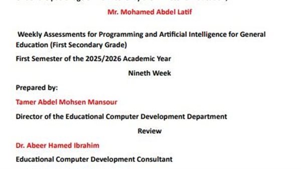 - التقييم الاسبوعي للصف الأول الثانوي البرمجة والذكاء الاصطناعي