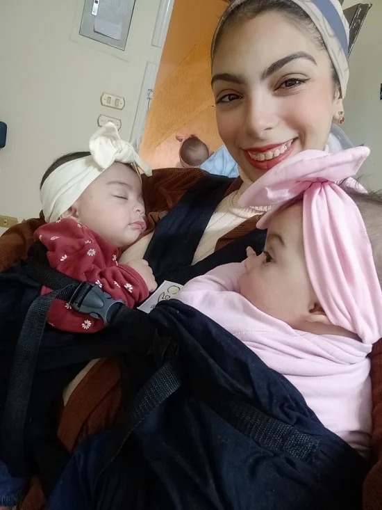 وتحكي نرمين عن معاناتها في الشهور الأولى، قائلة إن الأصعب هو التشتت بين احتياجات الأطفال الأربعة، خاصة بعد بدء إدراكهم، ما يجعل كل طفلة تحتاج إلى رعاية مضاعفة.
