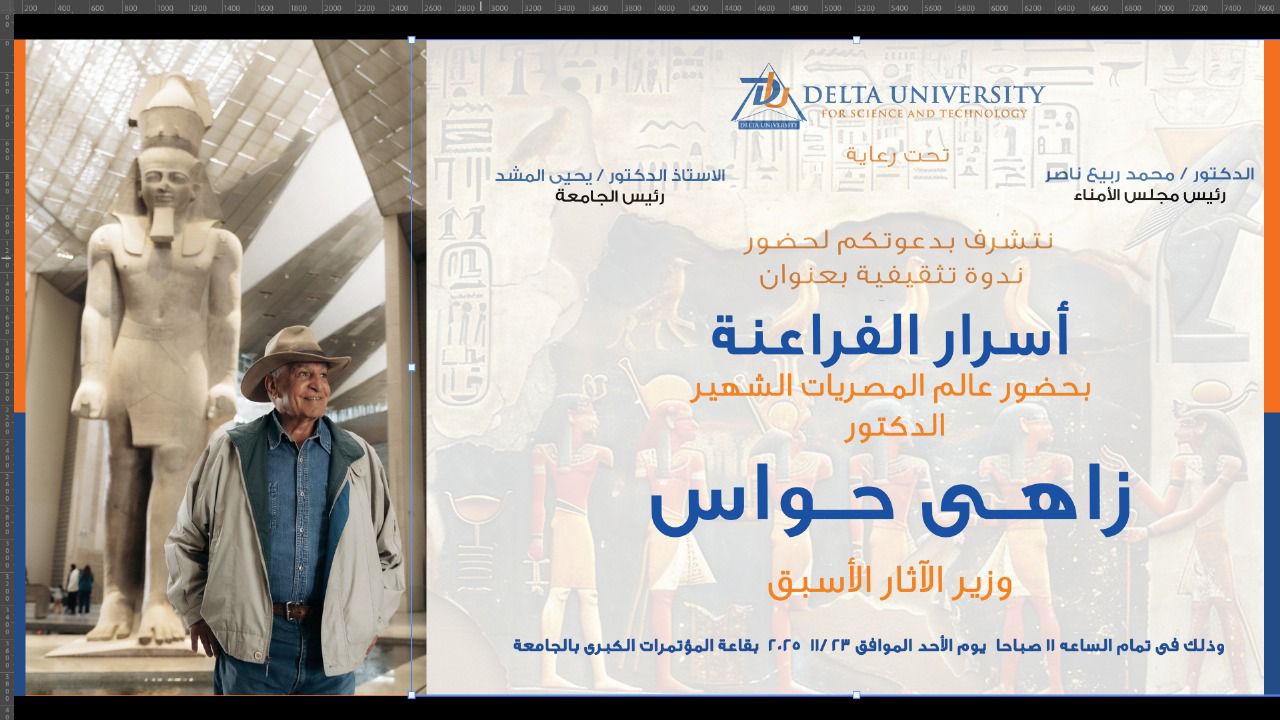 تنظم جامعة الدلتا تحت رعاية الدكتور محمد ربيع ناصر رئيس مجلس أمناء جامعة الدلتا، والدكتور يحي المشد، رئيس جامعة الدلتا، ندوة تقيفية بعنوان "أسرار الفراعنة" وذلك بحضور عالم المصريات الشهير الدكتور زاهي حواس، وزير الآثار الأسبق، ونخبة من الأساتذة والطلاب والمهتمين بالحضارة المصرية القديمة.