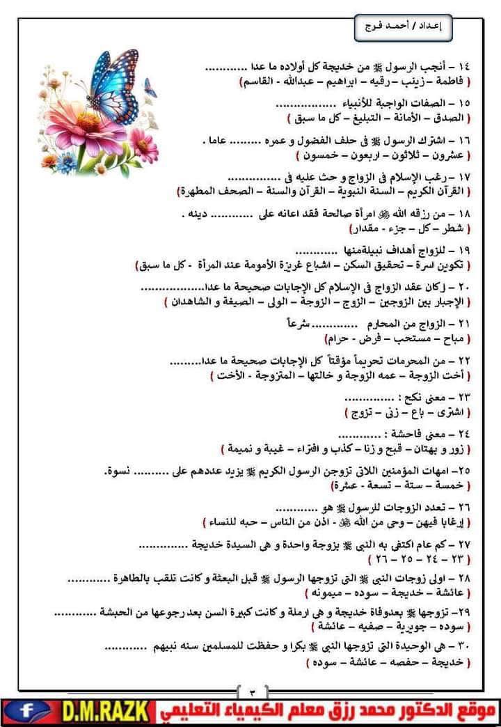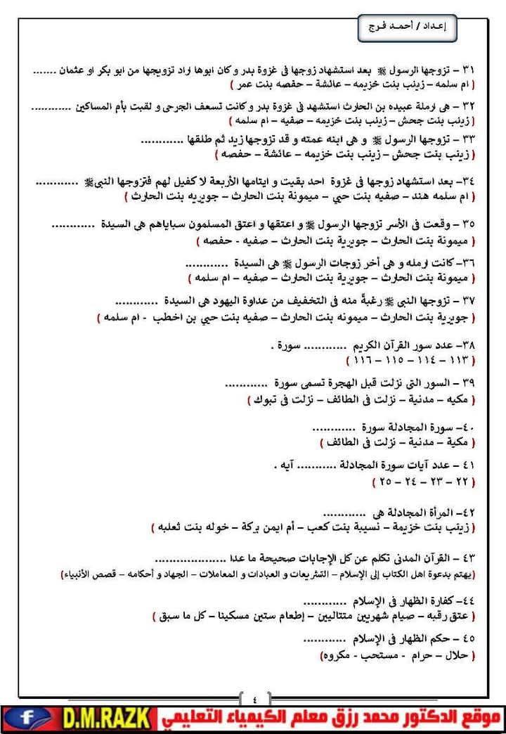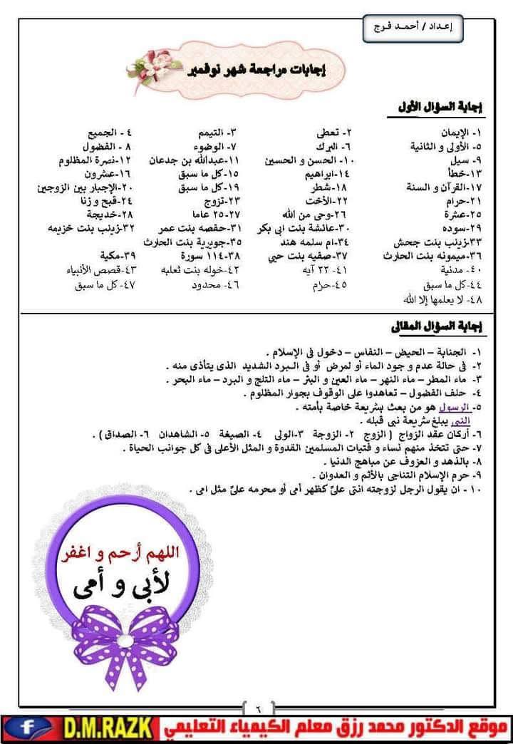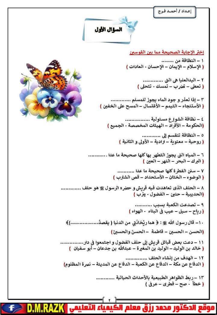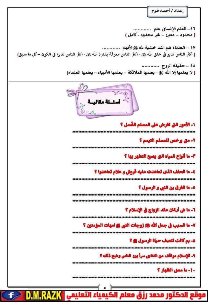 أقوى مراجعة في ليلة امتحان التربية الاسلامية وإجابتها الصف الأول الثانوي
