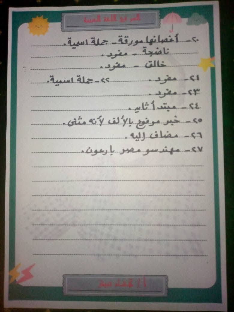 - مراجعات نهائيه امتحان اللغة العربية سادسة ابتدائي