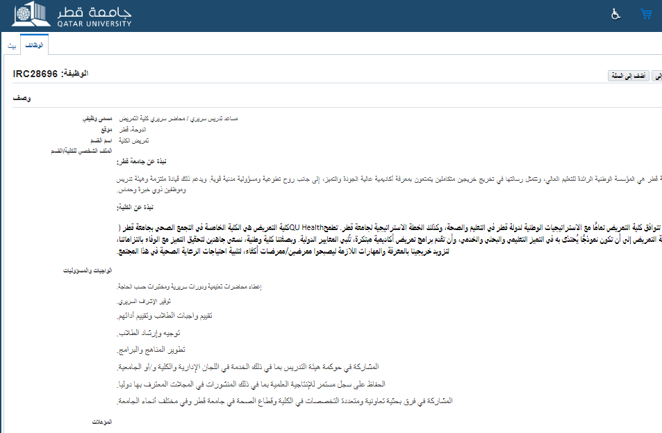 وتدعو جامعة قطر الراغبين في التقديم لإنشاء حساب عبر البوابة الإلكترونية للتوظيف وإكمال ملفهم الشخصي قبل تقديم الطلب.