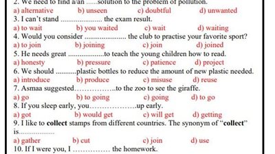 أسئلة تقييمات الأسبوع الـ 11 اللغة الإنجليزية الصف الأول الثانوي