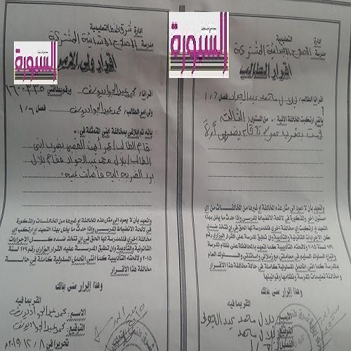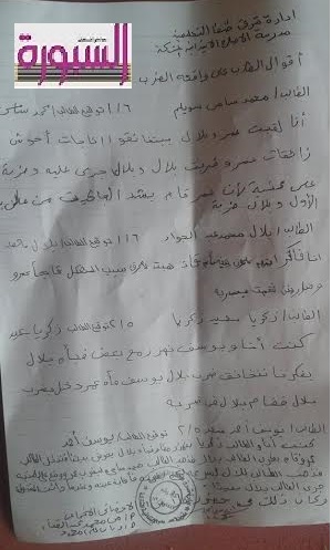 وفى سياق متصل قامت الإخصائية الاجتماعية بالمدرسة بعمل تحقيق داخلى بالواقعة، واستدعت ولى أمرالتلميذ بلال عبد الجواد، ثم قامت بفصله يوما طبقا للوائح المنظمة للجنة الانضباط المدرسى التى أقرتها وزارة التعليم, كما قامت بتسجيل شهادة زملاء التلميذ المصاب والمعتدى وأخذ أقوالهم بخط أيديهم على ما حدث للتلميذ المصاب الذى تبين أنه شجار بين تلاميذ فى سن الطفولة تسبب فى وقوع الحادث وبشهادة زملاء التلميذ والطفل المعتدى الذين أقروا أنهم كانوا يلعبون مع بعضهم ثم تطور اللعب لإصابة زميلهم دون قصد من المعتدى.