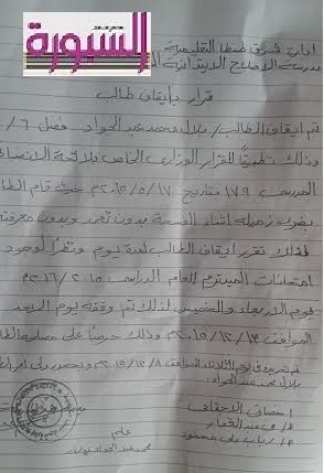 بالمستندات| إصابة طالب بنزيف في العين.. وولى الأمر يتهم الناظر.. ومدير المدرسة: "هعين على كل تلميذ حارس"