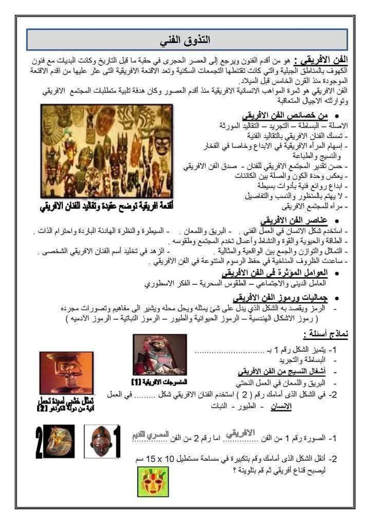 - التربية الفنية مراجعات نهائية الصف الأول الإعدادي