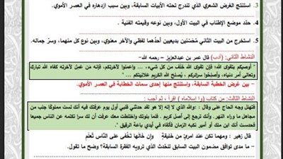 أسئلة تقييمات الأسبوع الـ 13 اللغة العربية الصف الثاني الثانوي