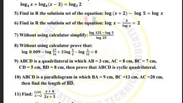 - مراجعات نهائيه امتحان الرياضيات العامة لغات ثانية ثانوي