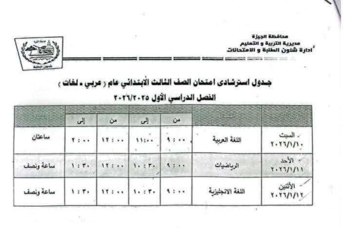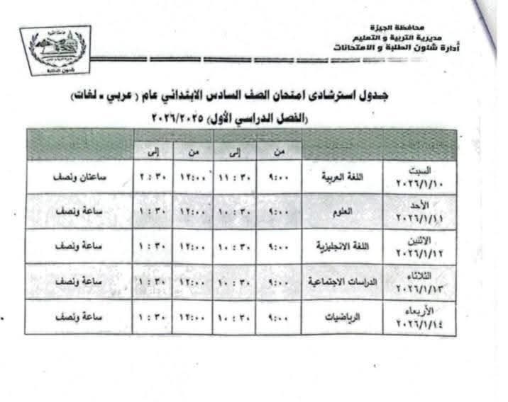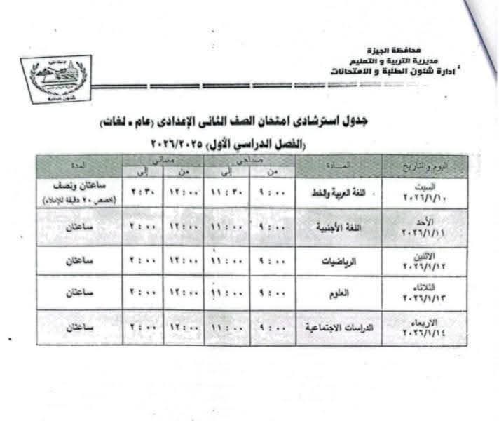 ويأتي اعتماد الجدول الزمني في إطار التنسيق الكامل بين محافظة الجيزة ومديرية التربية والتعليم، بما يراعي طبيعة كل مرحلة دراسية واختلاف نظم التعليم، إلى جانب مراعاة الإجازات الرسمية خلال فترة الامتحانات.