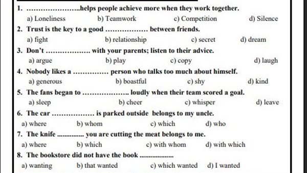 هذا التقييم هو فرصتك للتألق وتعزيز تقدمك في إتقان اللغة الإنجليزية المتقدمة. خلال الأسابيع الماضية، تناولنا مواضيع أساسية مثل الأزمنة المعقدة، والمفردات المتقدمة من وحداتنا، ومهارة التحليل النقدي في فهم المقروء. هذا التقييم ليس مجرد تقييم؛ بل هو مقياس دقيق لقدرتك على التفكير باللغة الإنجليزية، وتطبيق قواعد النحو بدقة، والتعبير عن الأفكار المعقدة بوضوح. تعامل مع هذه الأسئلة بتركيز هادئ وثقة متعلم لغة متمكن. لنرَ مهاراتك الممتازة تُطبق عمليًا! بالتوفيق!