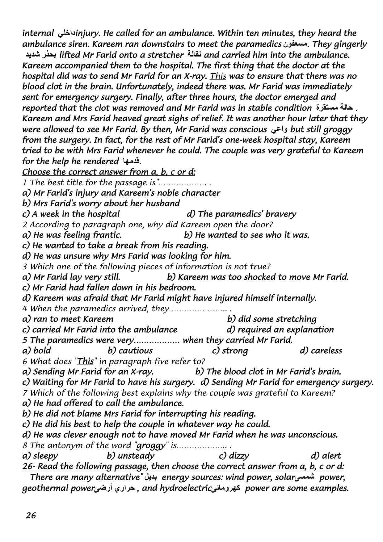 مراجعات نهائية.. 11 قطعة بالاجابات في اللغة الانجليزية لن يخرج عنها امتحان الثانوية العامة، تضمن لك التفوق لـ الصف الثالث الثانوي، للعام الدراسي الجاري 2025-2026، في مراجعات نهائيه أبرز 11 قطعة بالاجابات لغة انجليزية لـ الثانوية العامة تضمن لك التفوق لـ الصف الثالث الثانوي، حيث يواصل موقع السبورة نشر مراجعة ليلة الامتحان عن أبرز 11 قطعة بالاجابات لغة انجليزية لـ الثانوية العامة تضمن لك التفوق لـ الصف الثالث الثانوي، من خلال مراجعات نهائيه، واستعراض امتحان عن أبرز كلمات المضادات والمعاني لغة انجليزية لـ الثانوية العامة، وشرح مبسط، واستعراض امتحان عن أبرز 11 قطعة بالاجابات لغة انجليزية لـ الثانوية العامة تضمن لك التفوق لـ الصف الثالث الثانوي، عن طريق نشر العديد من الامتحانات، لطلاب وطالبات الصف الثانوية العامة، في مراجعات نهائيه، لن يخرج عنها امتحان آخر العام، ومن خلال متابعة مراجعات نهائيه أعدها خبراء المادة في وزارة التربية والتعليم.