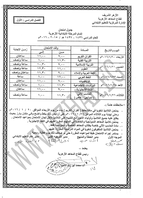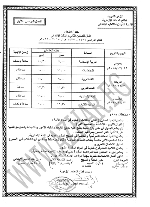 بالصور| ننشر جدول امتحانات المرحلة الابتدائية الأزهرية
