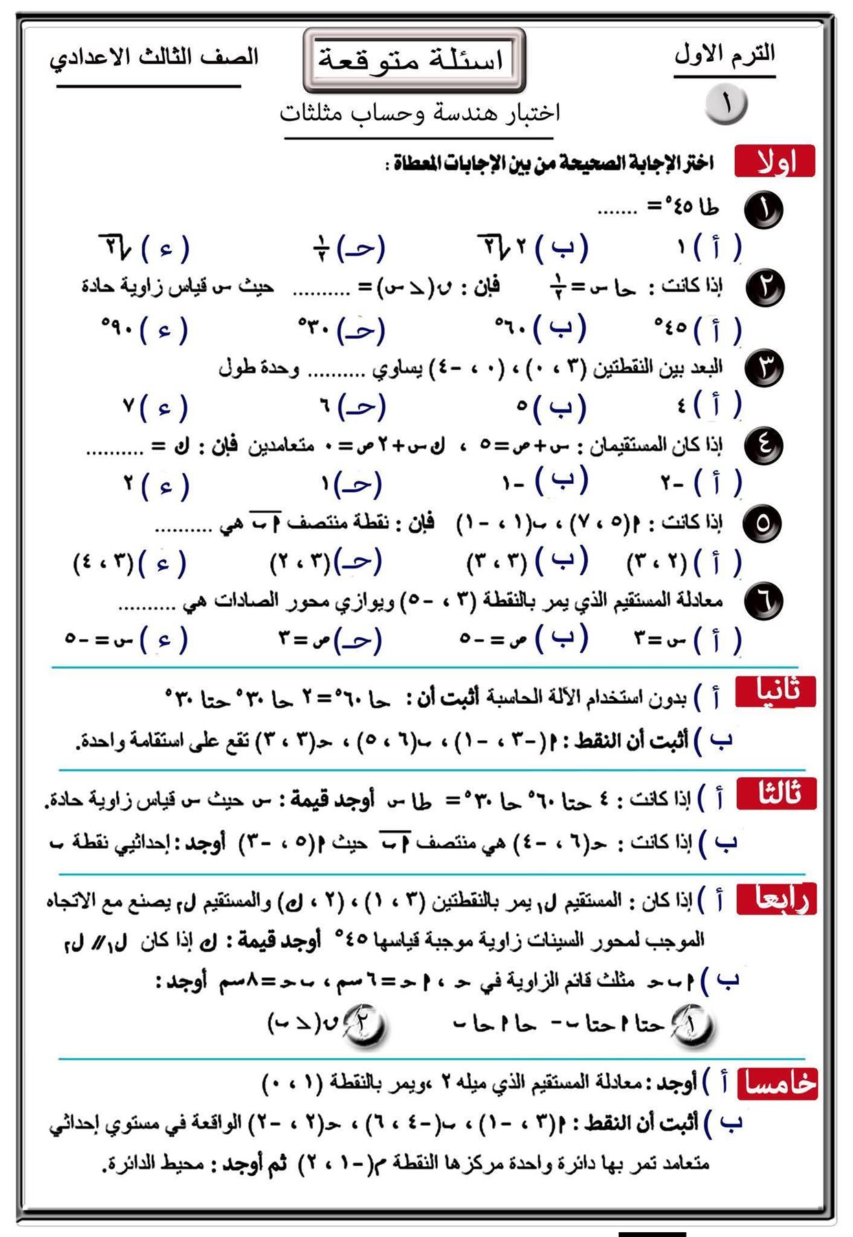 - جبر وهندسة ثالثة اعدادي