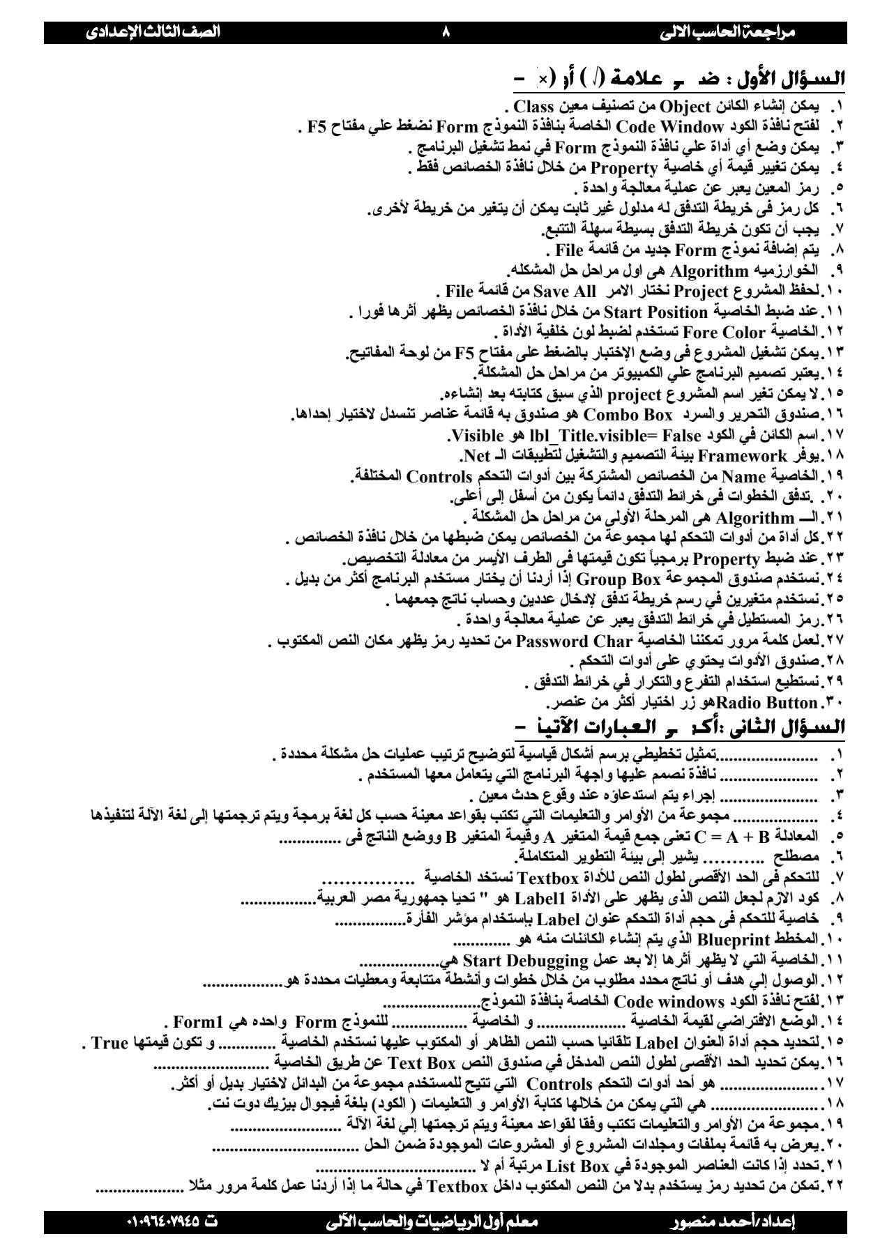 - مراجعة نهائية الحاسب الآلى ثالثة إعدادي