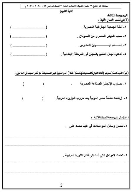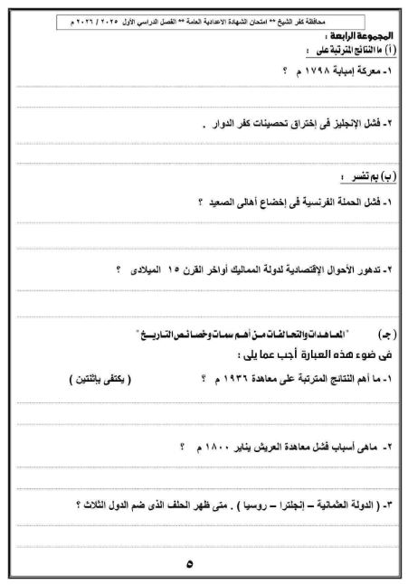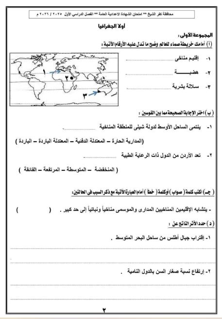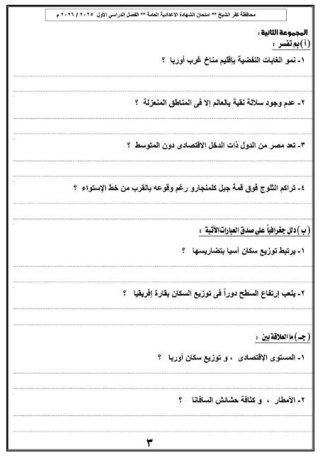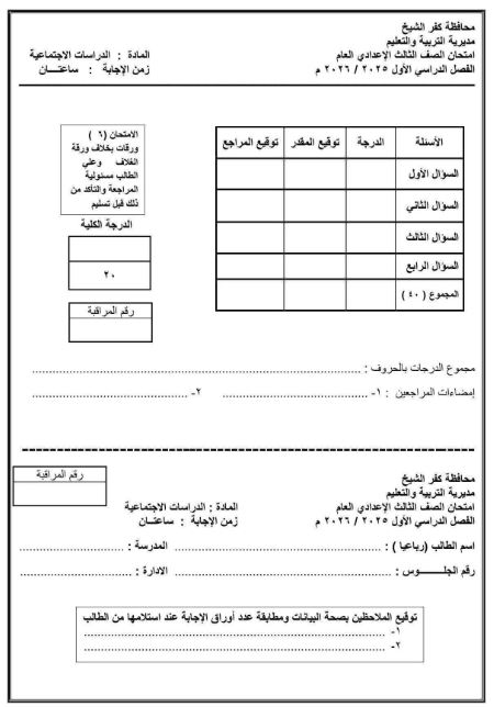 مراجعات نهائية.. بالاجابات نموذج استرشادي في الدراسات الاجتماعية لـ الصف الثالث الإعدادي محافظة كفر الشيخ