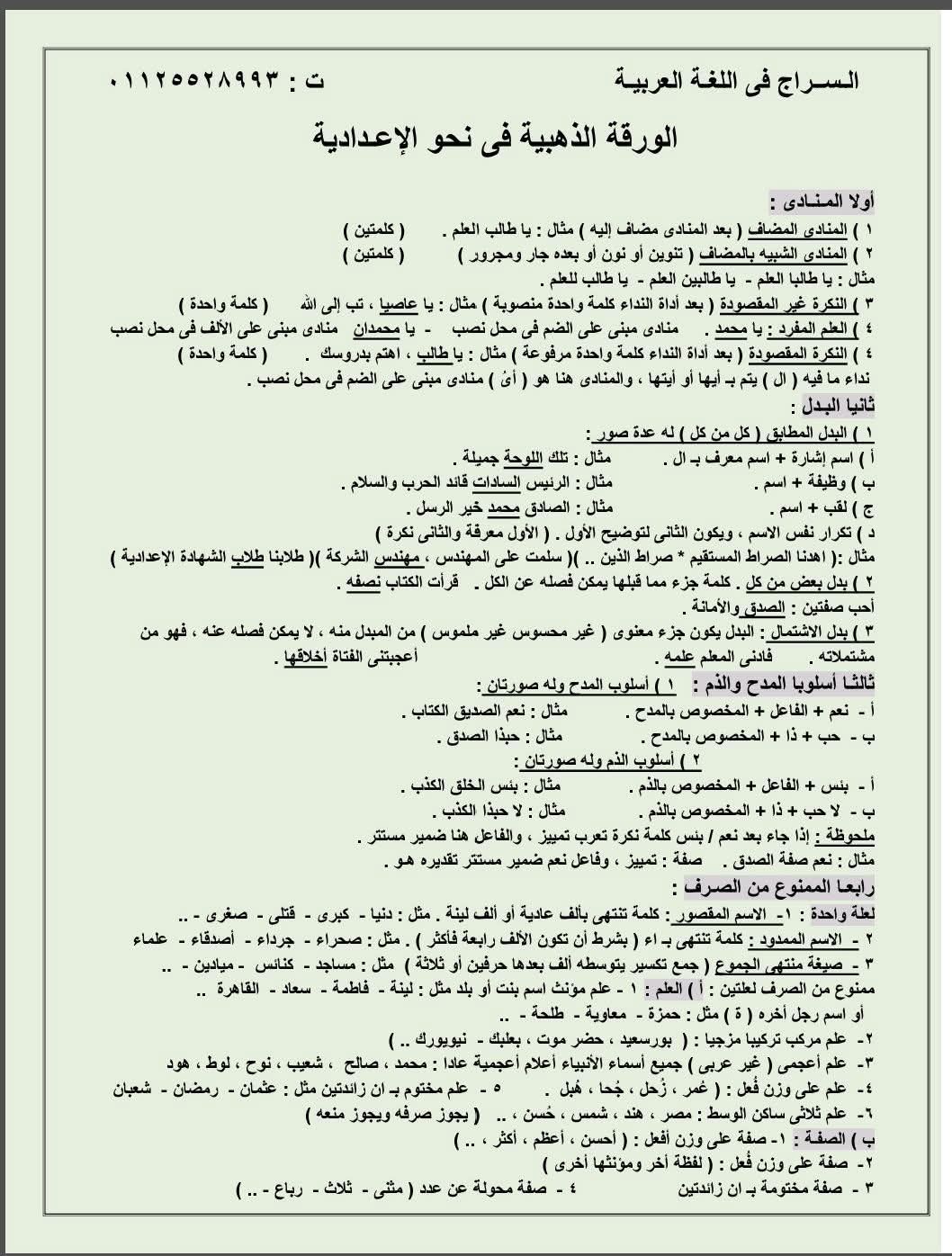 أقوى مراجعة في ليلة امتحان النحو الشهادة الاعدادية