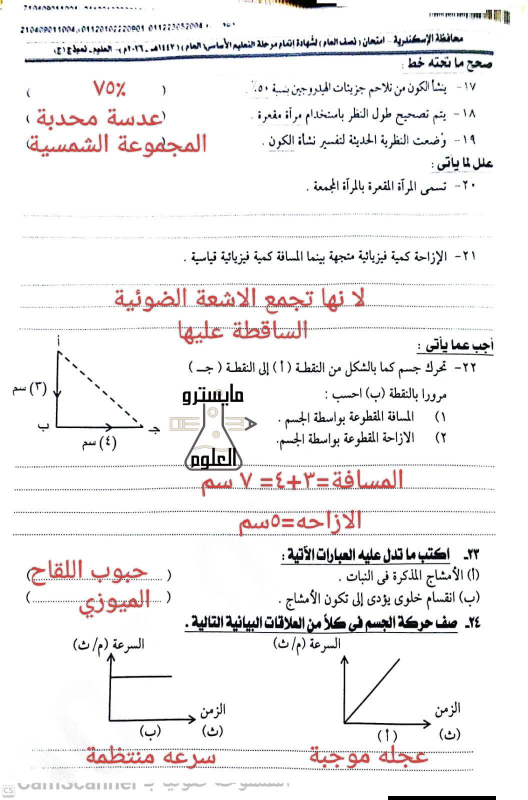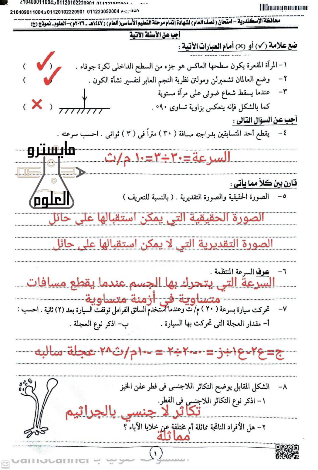 مراجعات نهائية.. حل امتحان العلوم محافظة الاسكندرية لـ الصف الثالث الاعدادي 2026