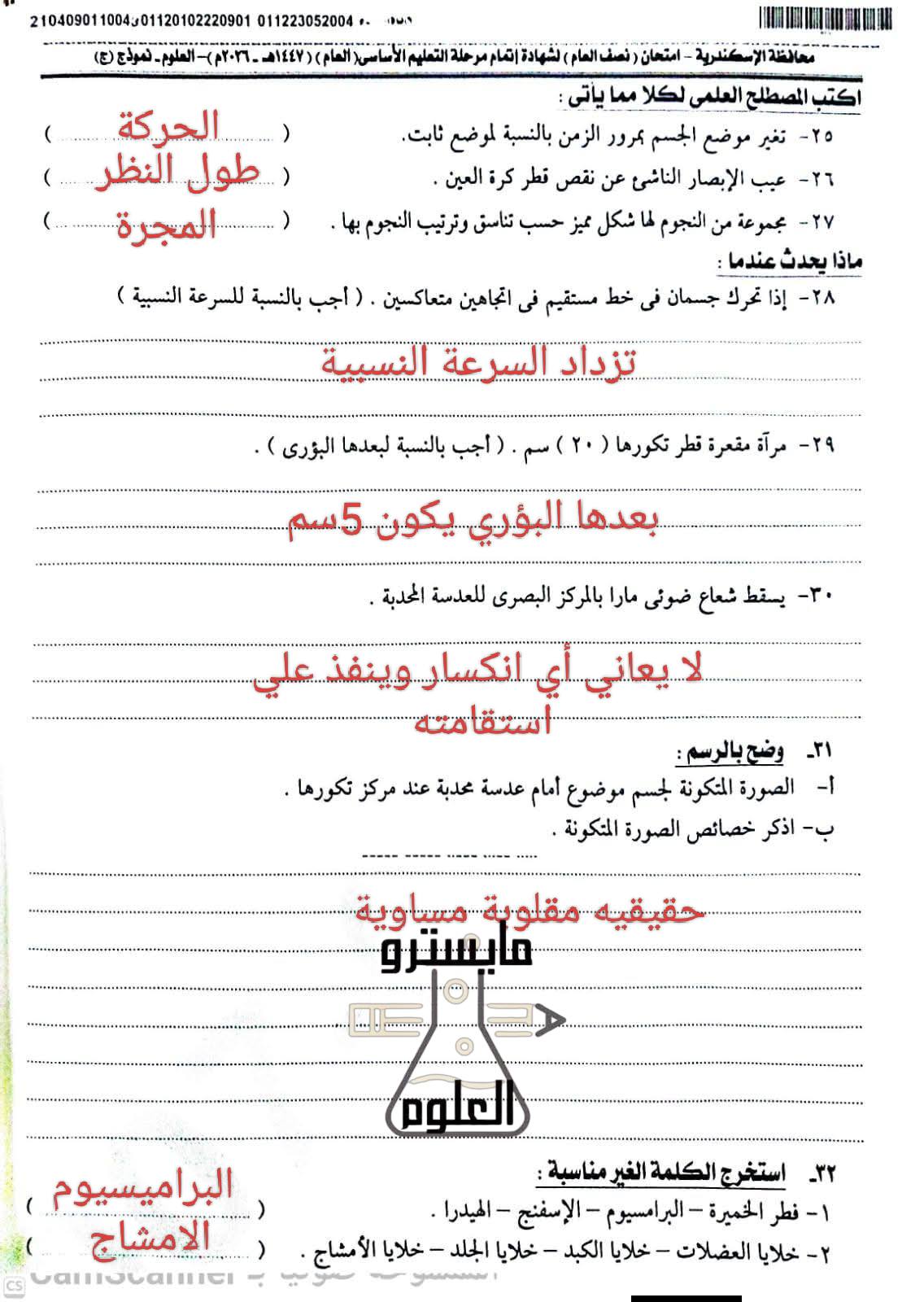مراجعات نهائية.. وحل امتحان العلوم محافظة الاسكندرية، تضمن لك دخول الامتحان وهو في جيبك، لطلاب وطالبات الصف الثالث الإعدادي، من خلال امتحانات العلوم، تضمن لك مراجعات نهائية في منهج الفصل الدراسي الأول، والتى تعد مرجعا أساسيا في مراجعات نهائيه، لمقرر المنهج الدراسي للعام الدراسي الجاري 2025-2026، أعدها خبراء المادة في وزارة التربية والتعليم، من أجل مراجعات نهائيه لطلاب الثالث الإعدادي.