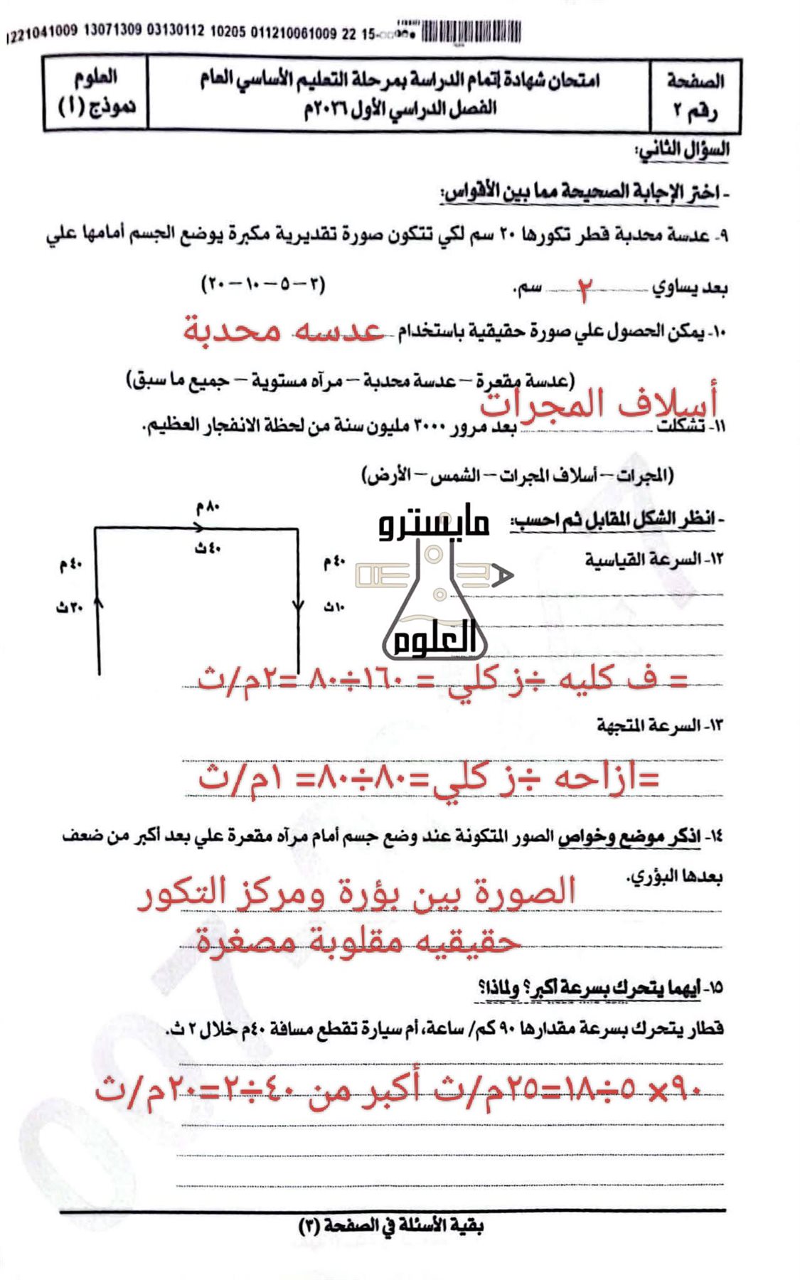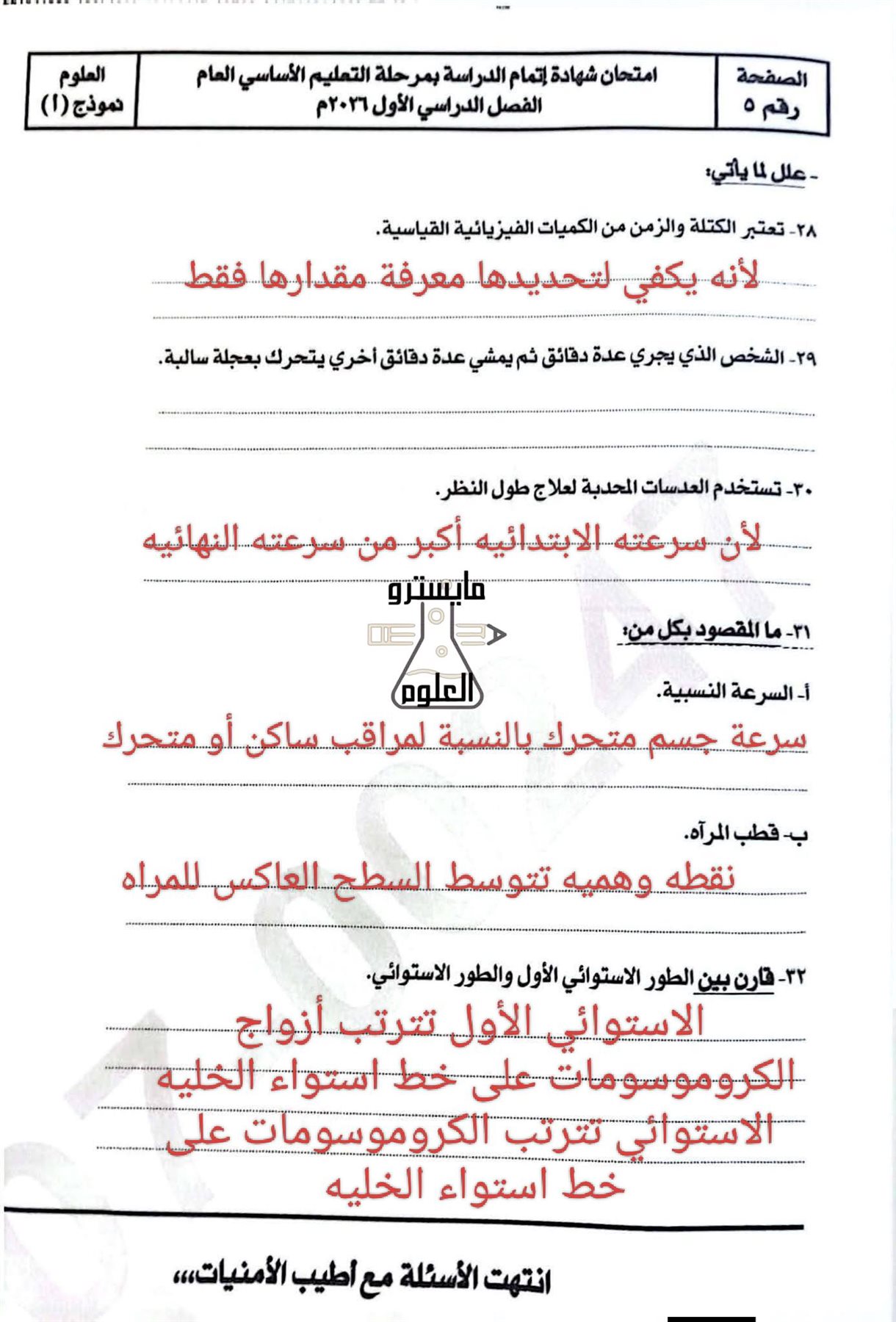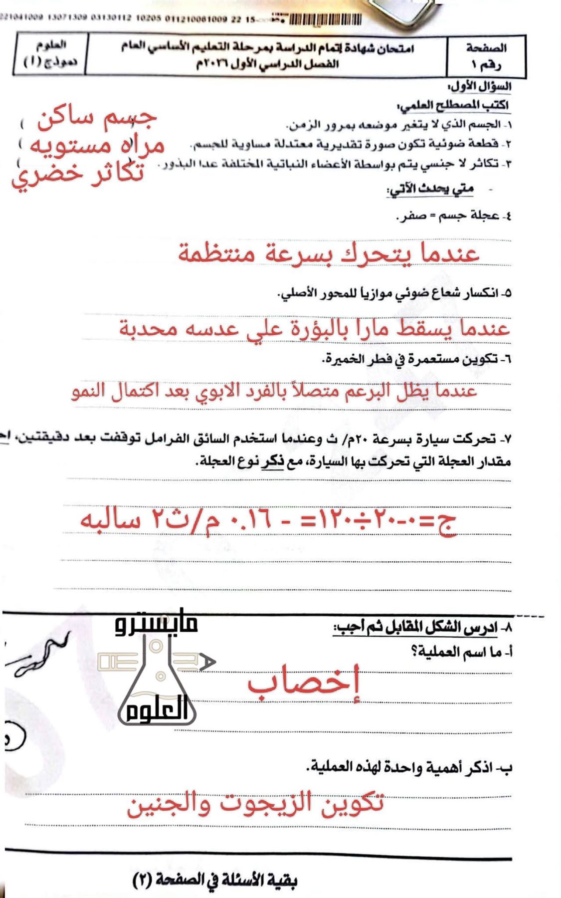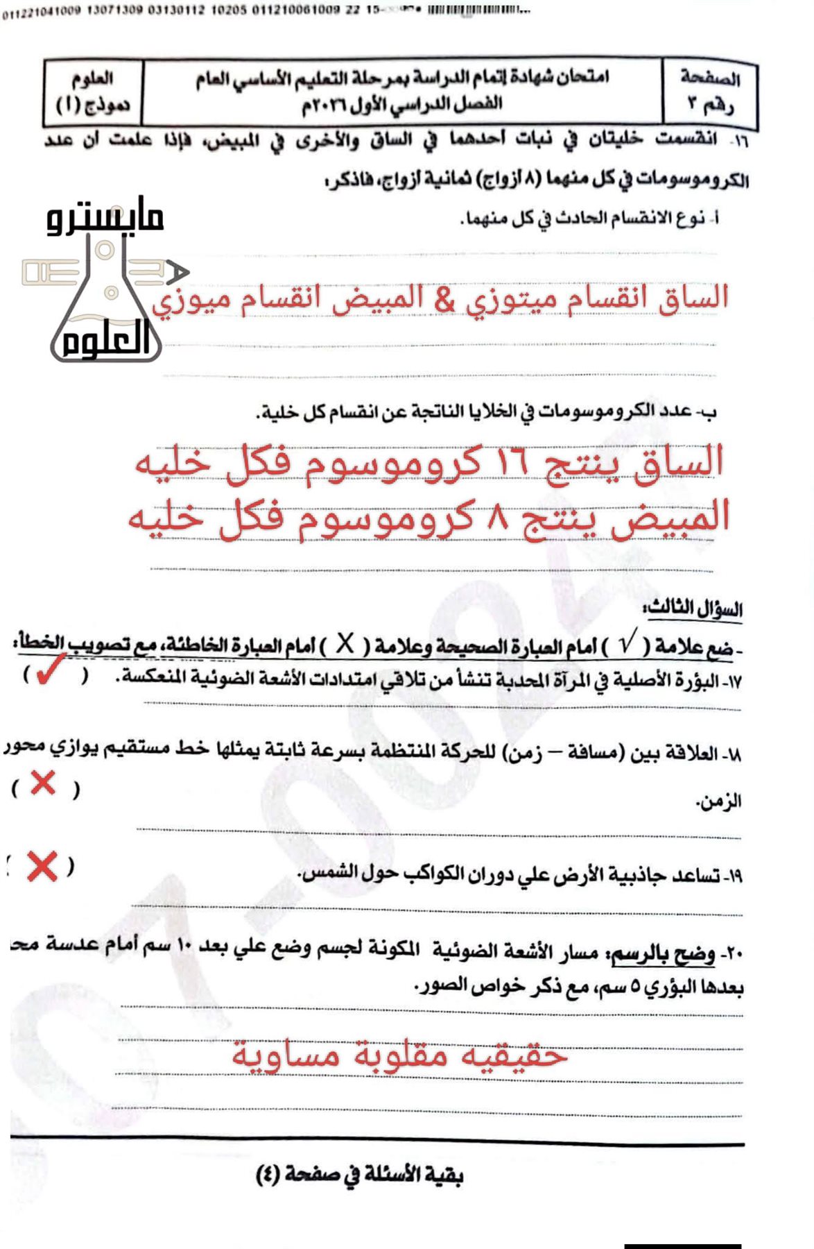 - بالاجابات امتحان العلوم محافظة سوهاج