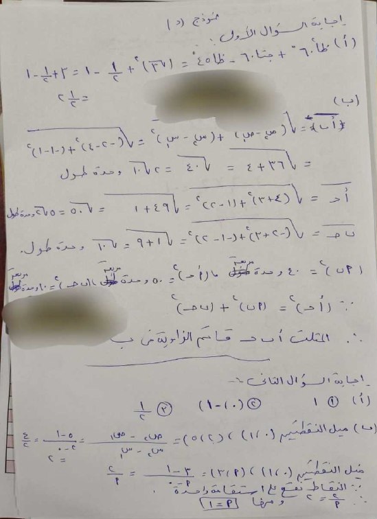 - نموذج إجابة امتحان هندسة ثالثة إعدادي