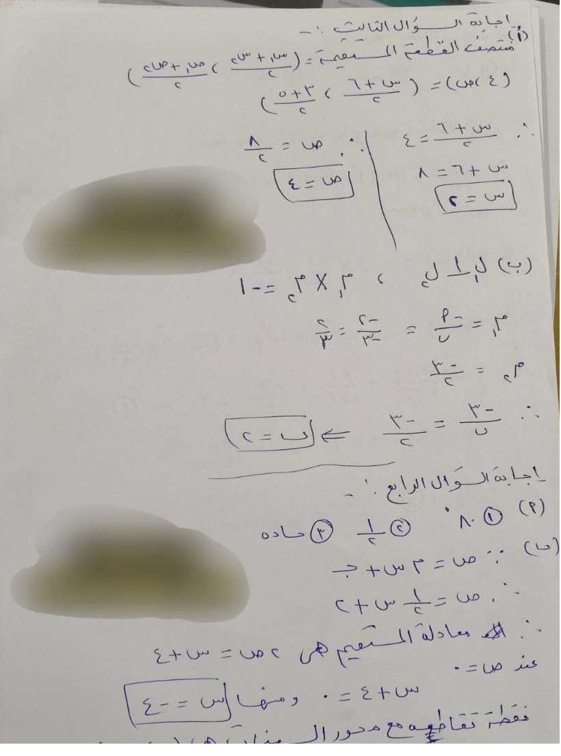 - حلول تمارين كتاب الامتحان هندسة ثالثة إعدادي
