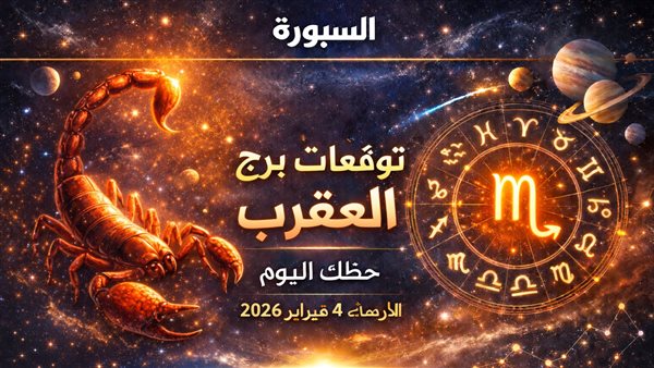 تحدّ توقعات برج العقرب حظك اليوم الأربعاء 4 فبراير 2026 بإيجابية وذكاء، ولا تترك الفرص تفلت من بين يديك، اليوم هو فرصة لإعادة ترتيب الأولويات وتحويل الضغوط اليومية إلى طاقات إنتاجية، حيث يمكنك تعزيز مسارك المهني والمالي، وتقوية روابطك العاطفية، والمحافظة على صحتك، استثمر كل لحظة بوعي، ولا تهمل التفاصيل الصغيرة التي تصنع الفارق الكبير، كن يقظًا ومستعدًا لأي مفاجأة، وامنح نفسك فرصة للنمو الشخصي والمهني، فالفلك اليوم يقدم لك خارطة طريق متكاملة لتحقيق أهدافك بثقة وحكمة.