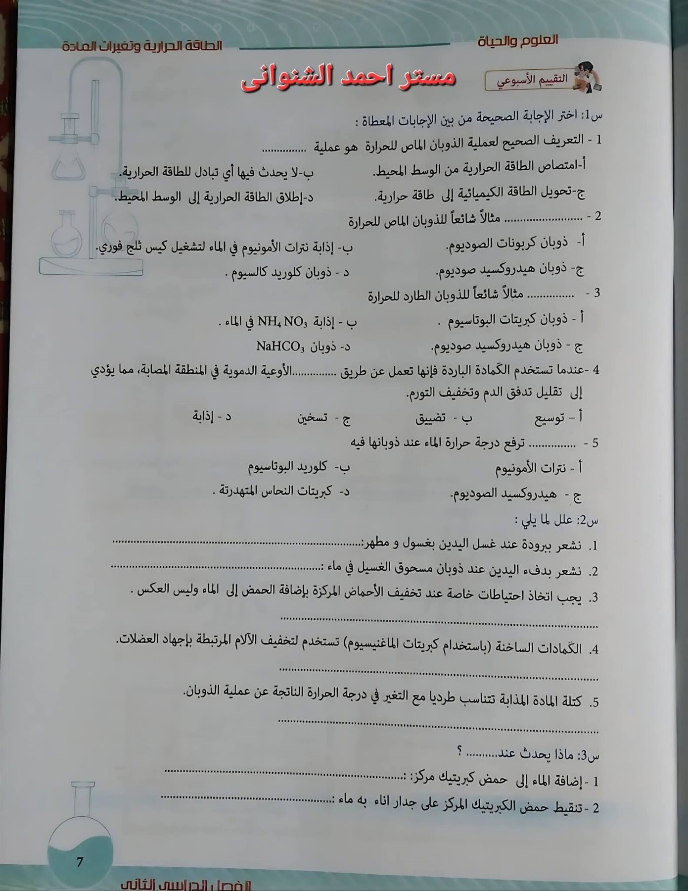 أسئلة تقييم الوزارة لـ الأسبوع الأول العلوم ثانية اعدادي