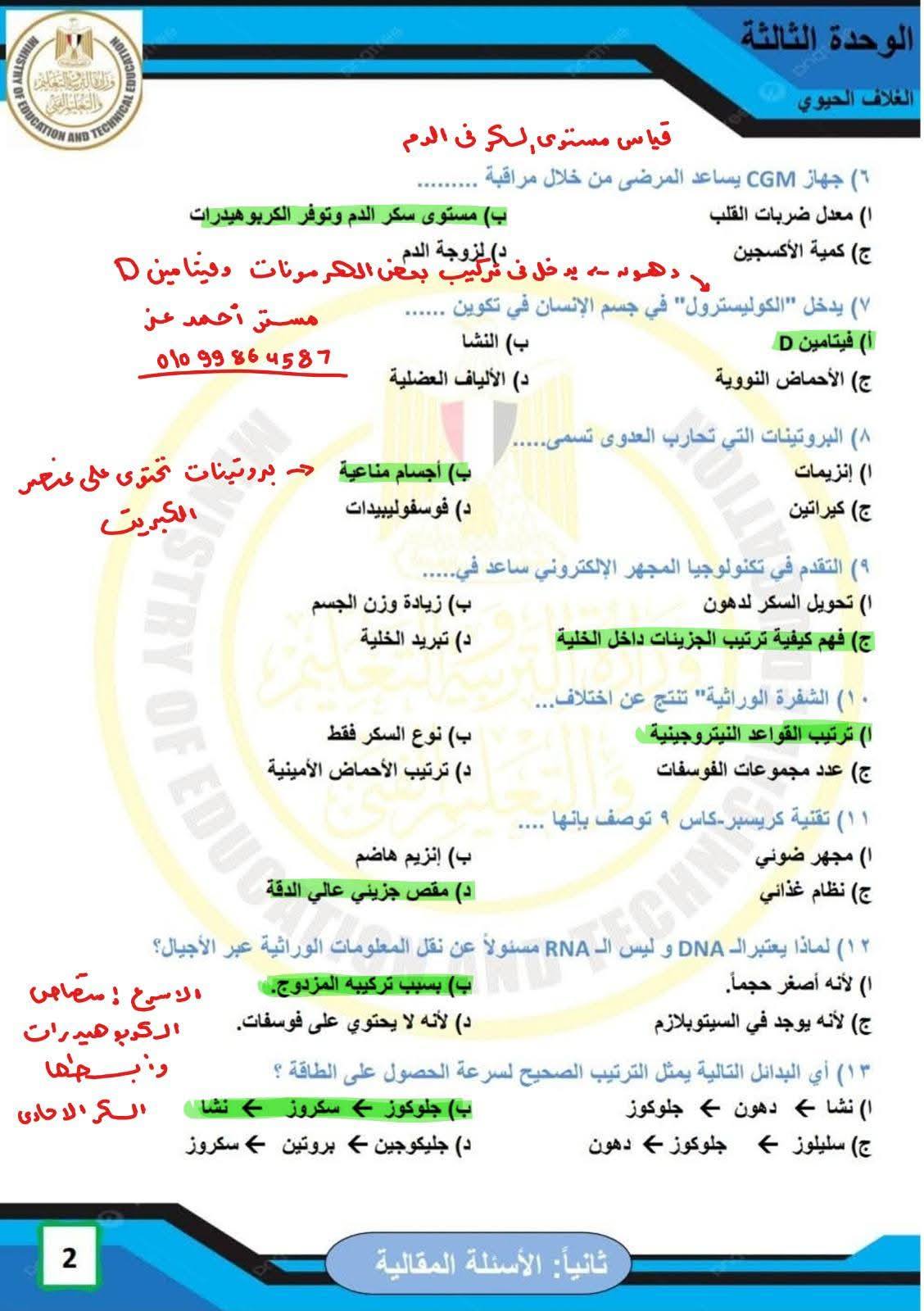- الأسبوع الثاني تقييم أولى ثانوي علوم متكاملة ترم ثاني مراجعة نهائية