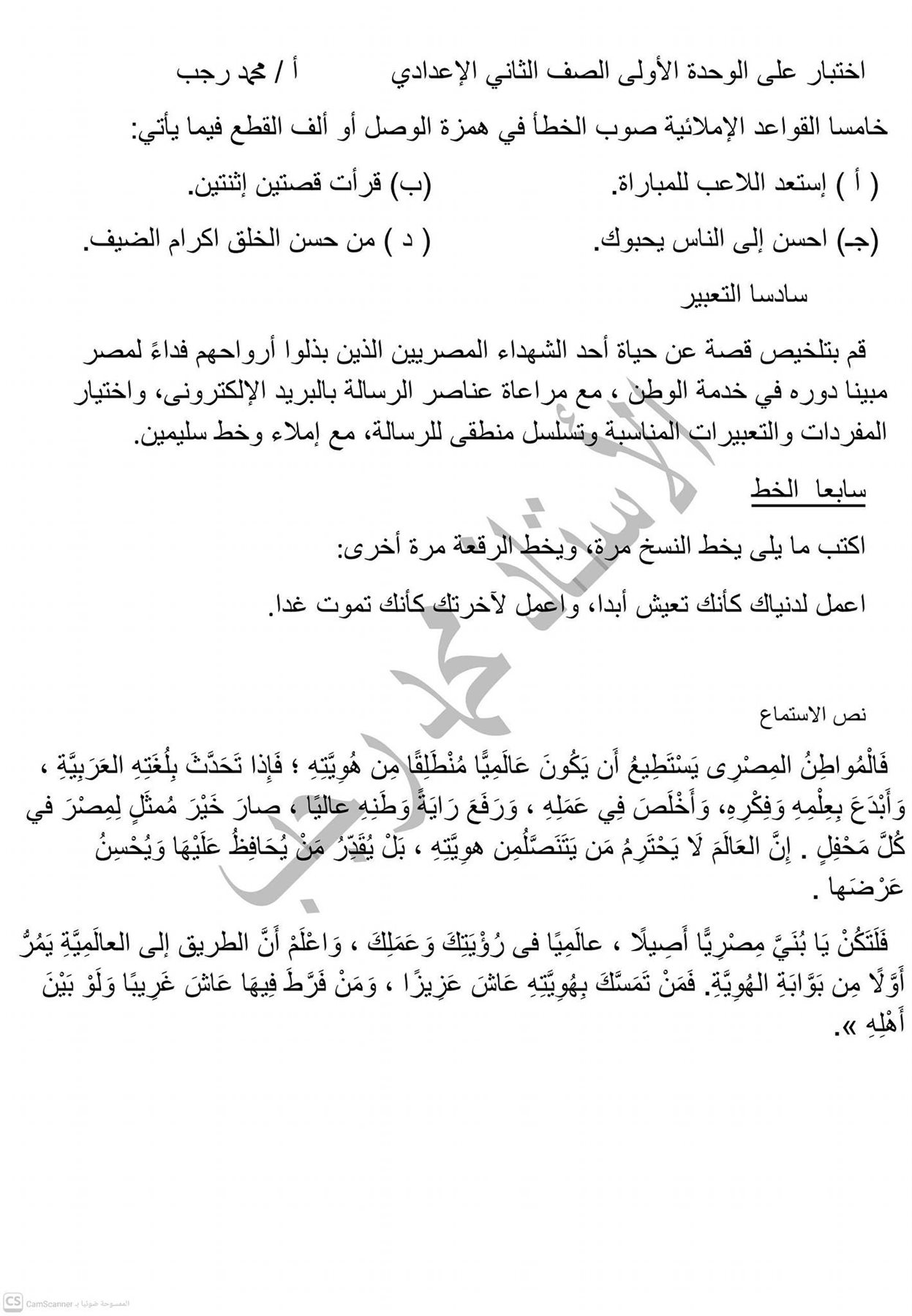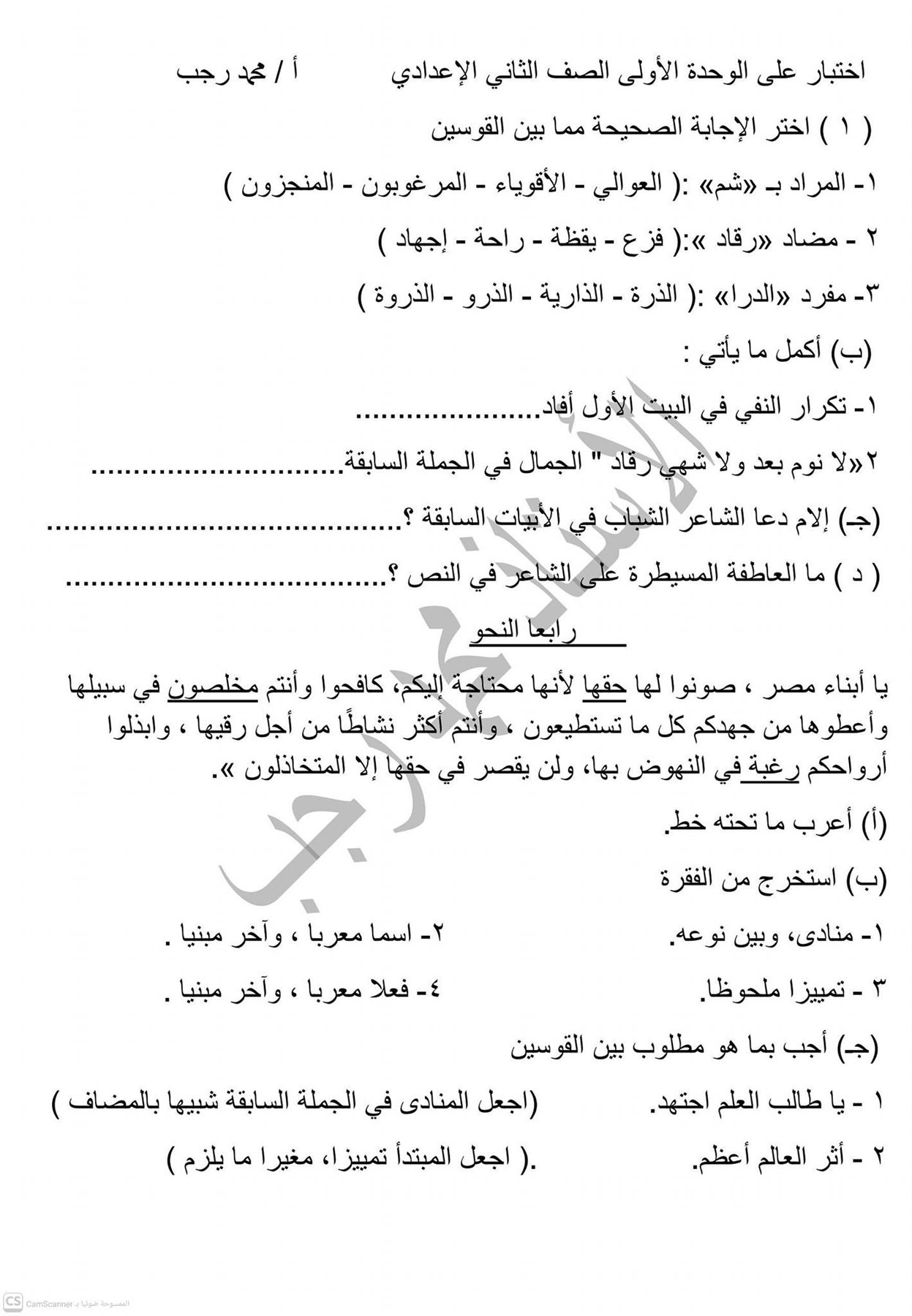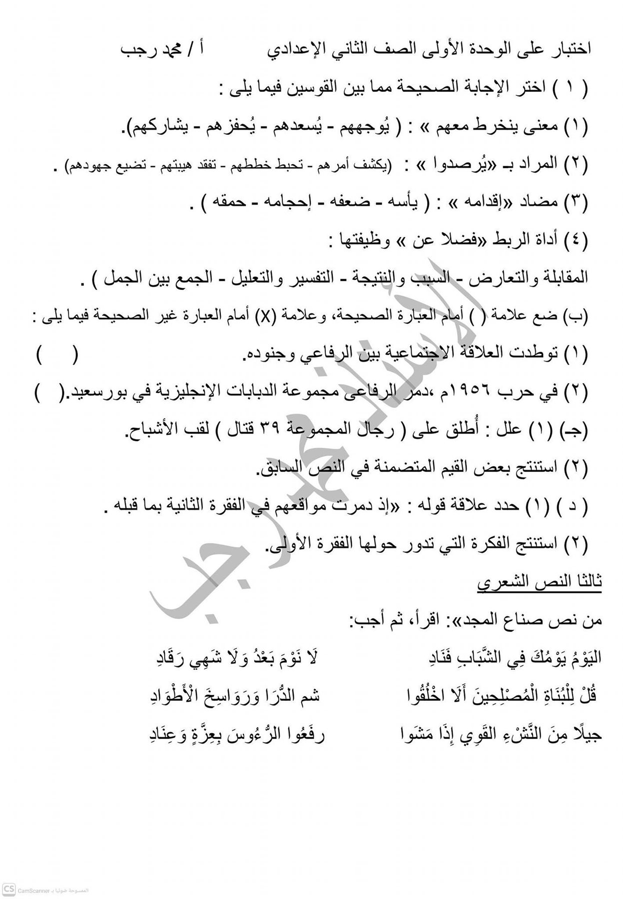 - اللغة العربية الصف الثاني الإعدادي