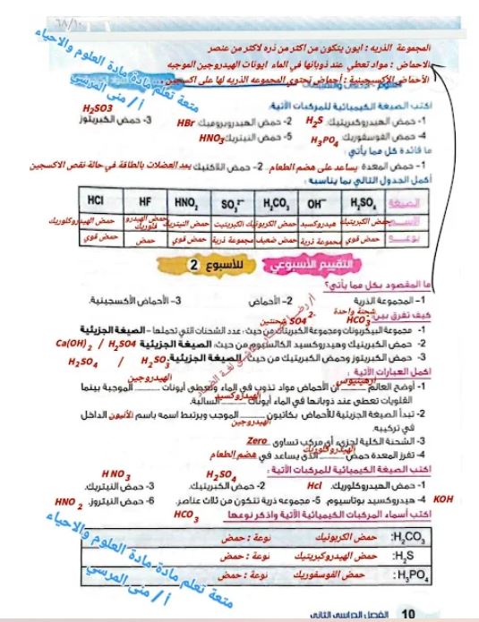 - حل أسئلة تقييمات الأسبوعين الثاني والثالث العلوم