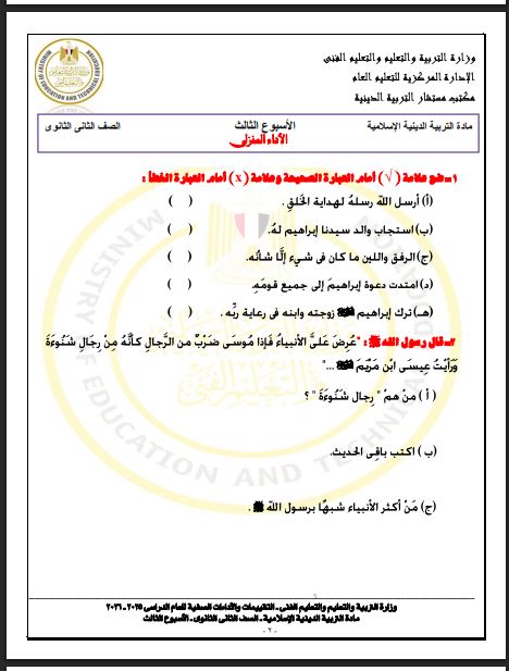 لطلاب الثاني الثانوي.. أسئلة تقييمات الأسبوع الثاني التربية الاسلامية ترم ثاني
