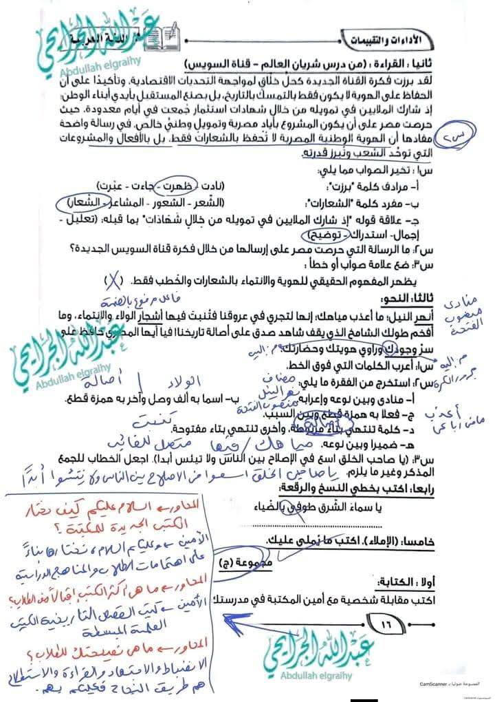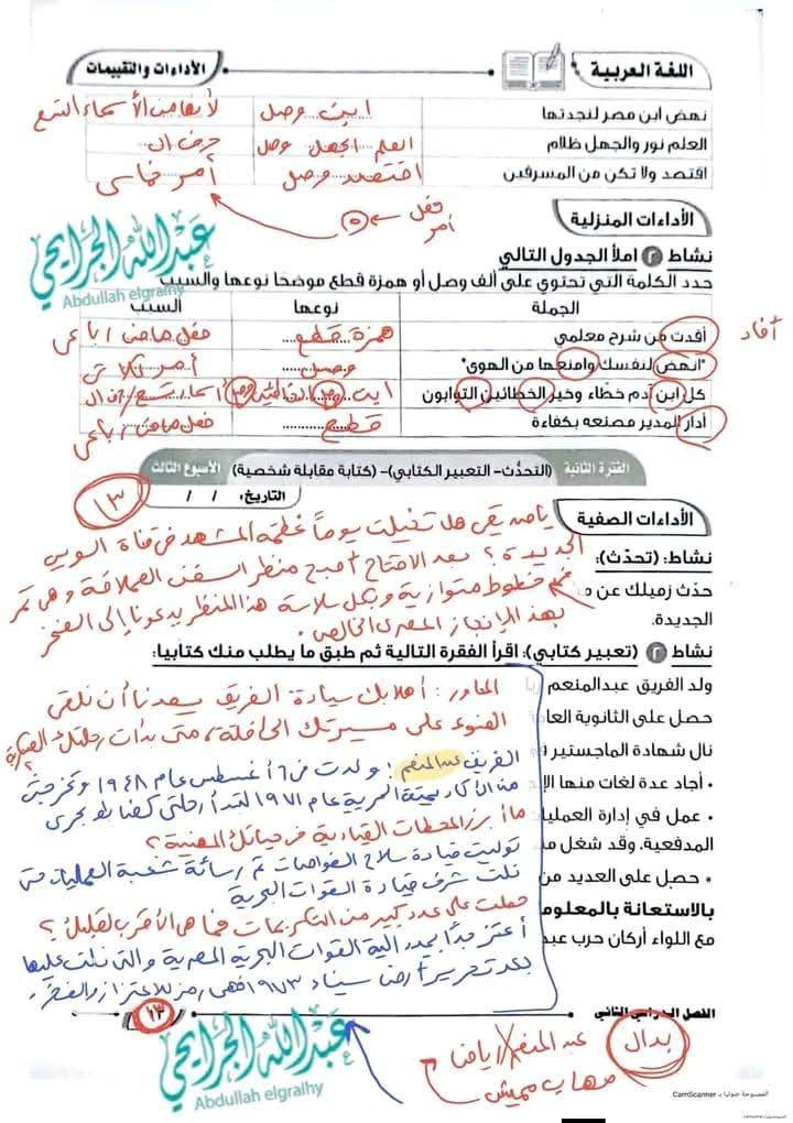 - مراجعات نهائية الصف الثاني الاعدادي عربي ترم ثاني