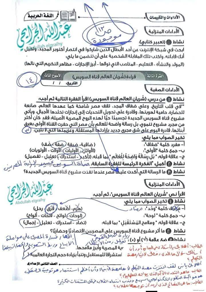 - الصف الثاني الإعدادي اللغة العربية ترم ثاني