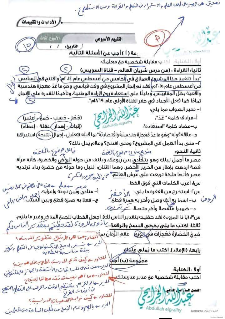 - تقييم الأسبوع الثالث لغة عربية ترم ثاني