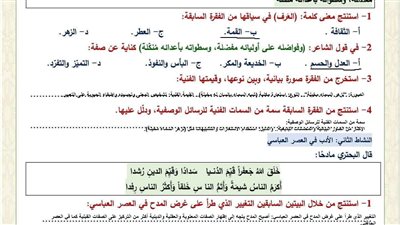 امتحان اللغة العربية عن مقرر شهر فبراير بالاجابات لـ الصف الأول الثانوي