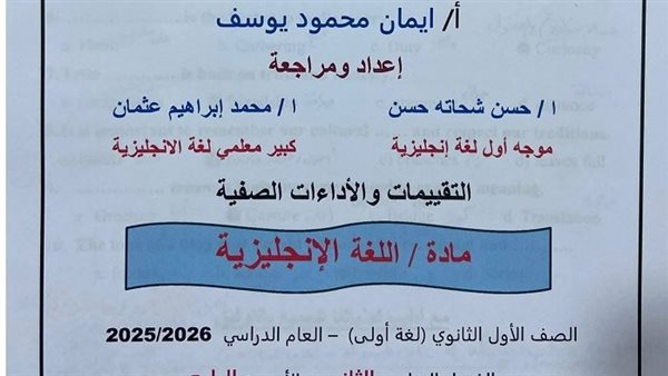 - اللغة الإنجليزية مراجعات نهائية الصف الأول الثانوي