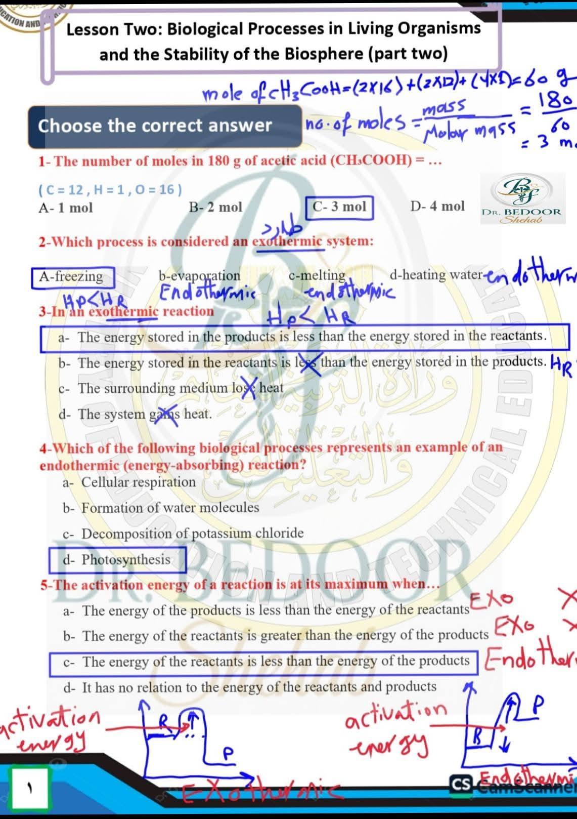- حل التقييم الاسبوعي للصف الأول الثانوي احياء