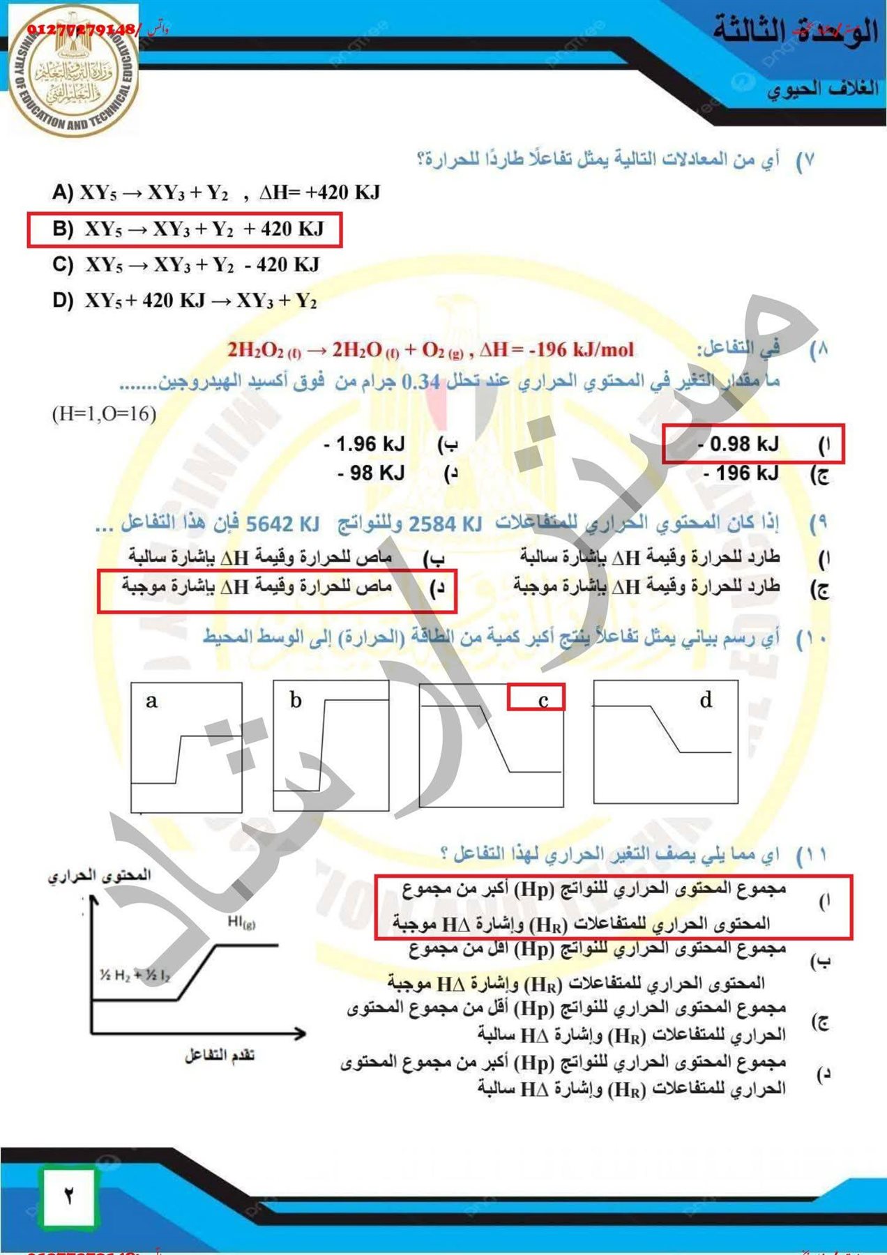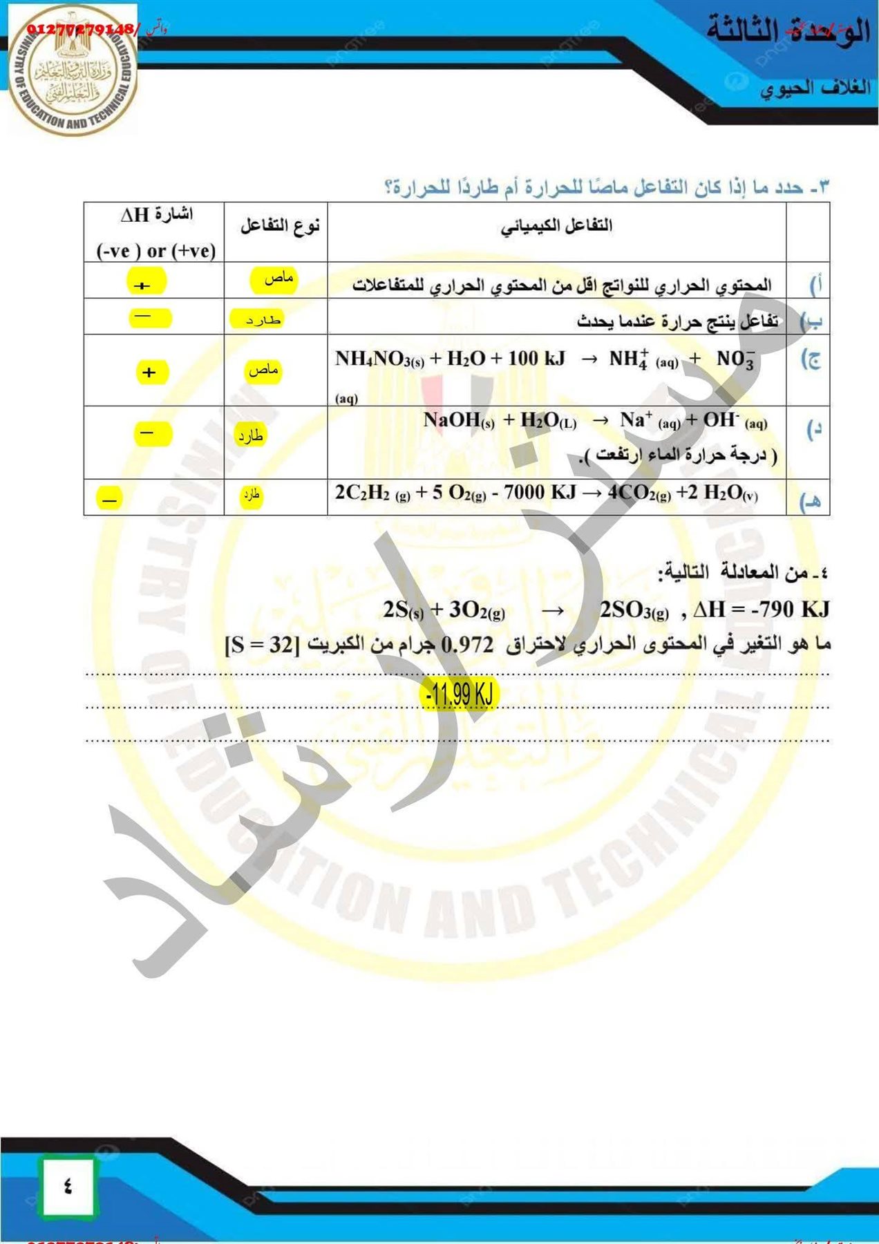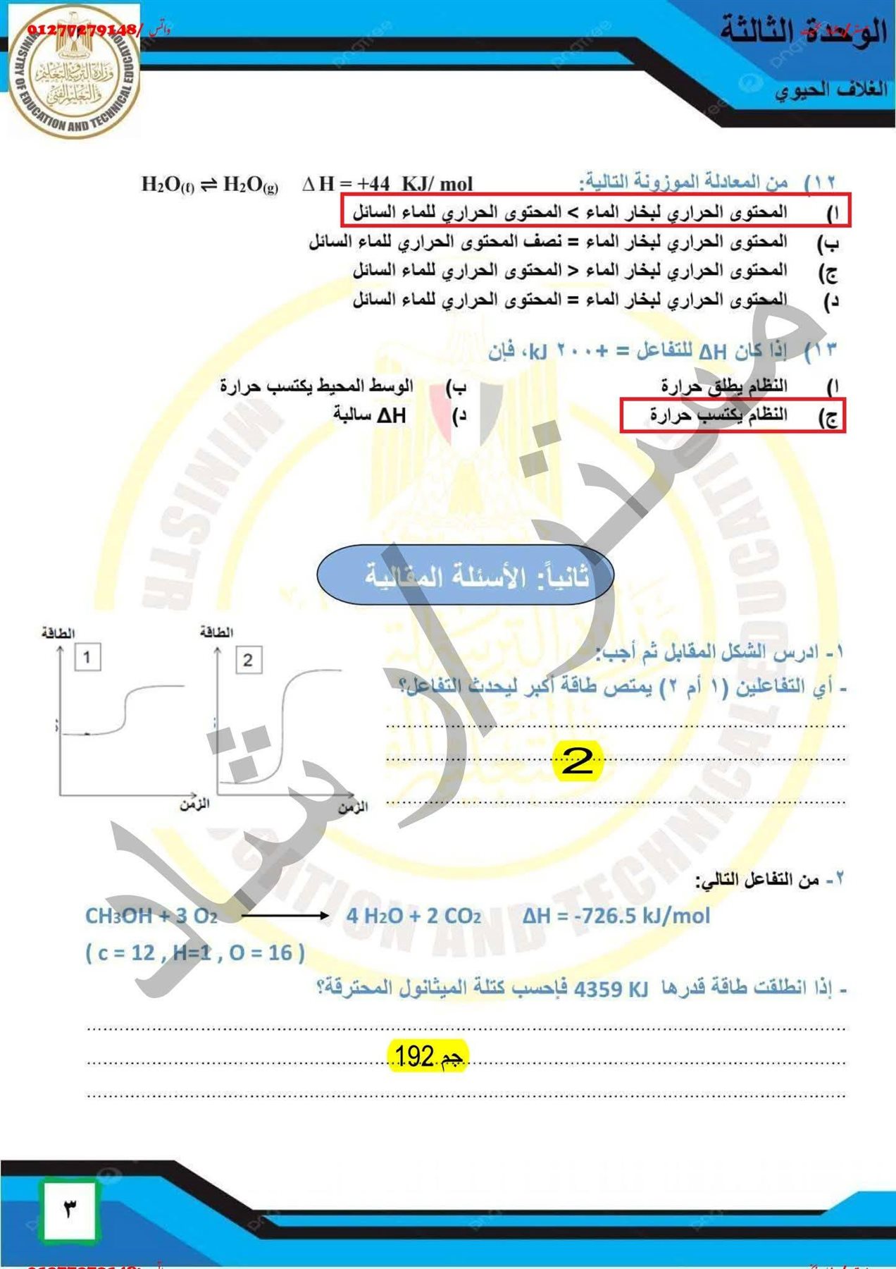 اجابات التقييم الاسبوعي الرابع علوم متكاملة أولي ثانوي وبكالوريا ترم ثاني أولى ثانوي