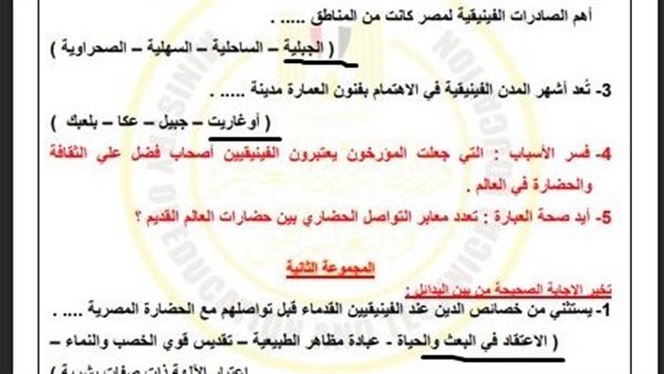 أولًا: حل ورقة التاريخ (الصف الأول الثانوي)