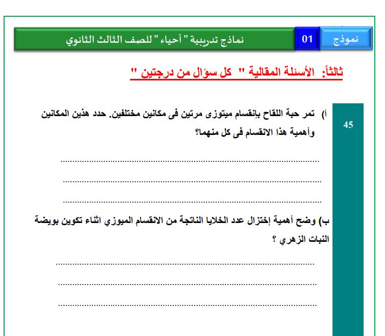 - امتحانات أحياء استرشادية ثانوية عامة 2026