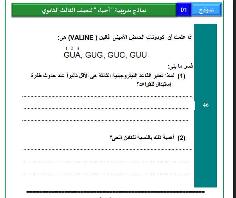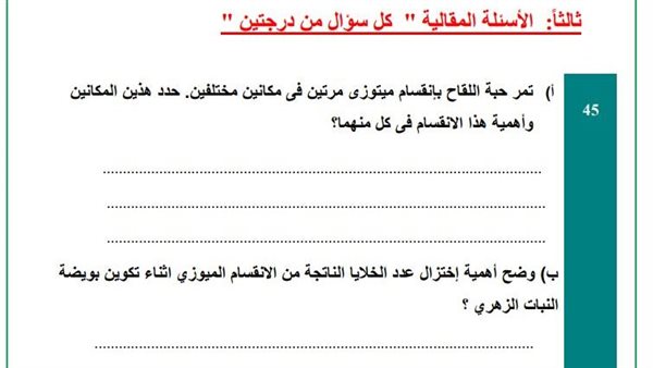 - حل أسئلة الأحياء الثانوية العامة 2026