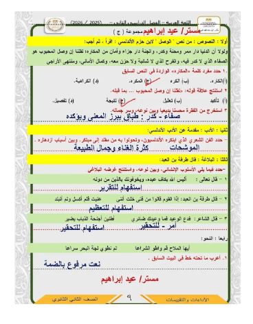 - اللغة العربية مراجعات نهائية الصف الثاني الثانوي