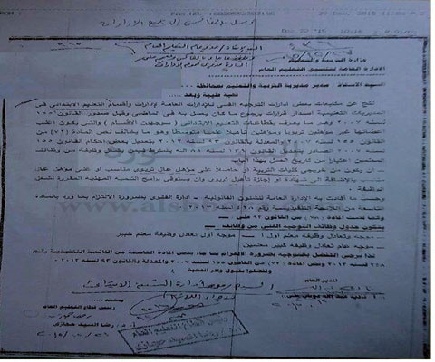 بالمستندات : التعليم تقنن وظائف المعلمين لتصحيح الاوضاع